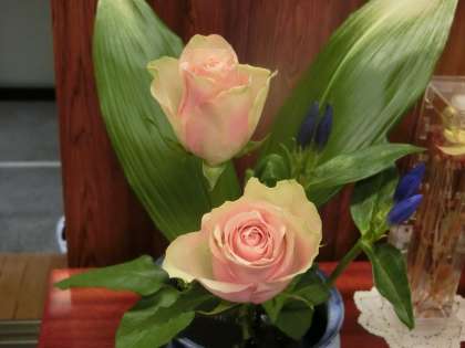 活け花のピンクの薔薇。