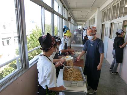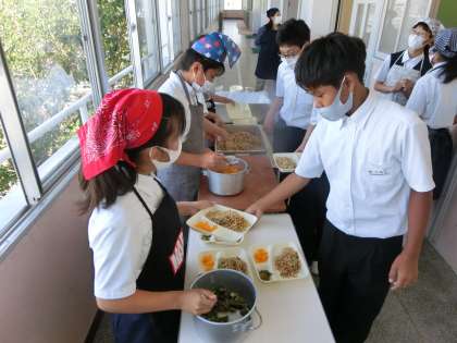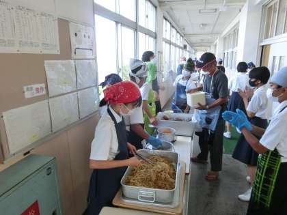 4時間目の授業が終了し、給食の配膳タイムとなりました。