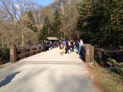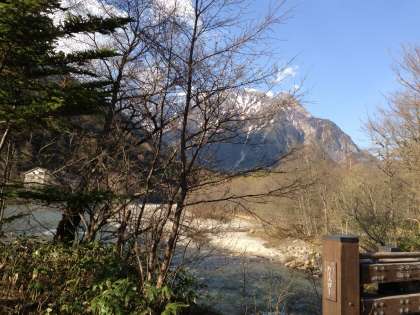 自然豊かで、梓川の流れがとてもきれいです。川の水は冷たくてたいへん気持ち良かったです。