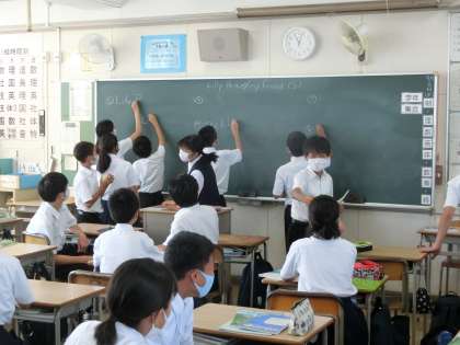 生徒たちが、答えを黒板に書き始めました。