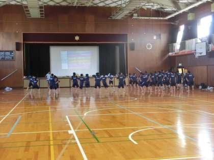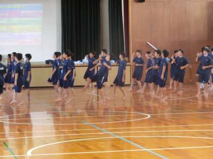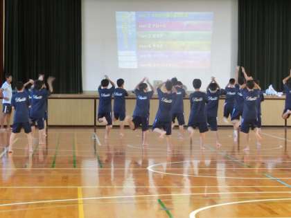 生徒たちは、音楽のリズムに乗って、踊っています。