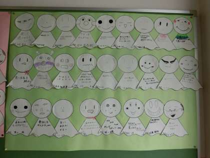廊下にたくさんの「てるてる坊主」が飾られています。