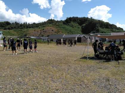 快晴の中、水分をとりながら、レクリエーションを楽しんでいます。