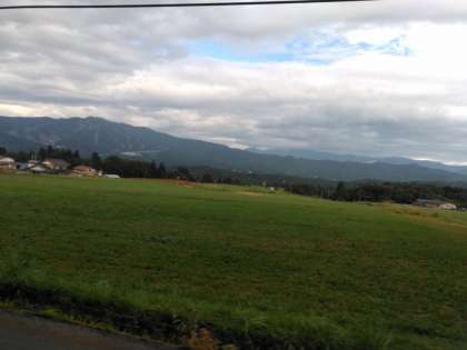 長良川の会場まで、バスは高原を走ります。