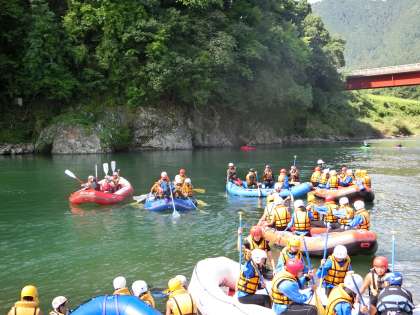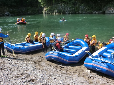 クラスが4つの班に分かれ、次々と漕ぎだしていきます。
