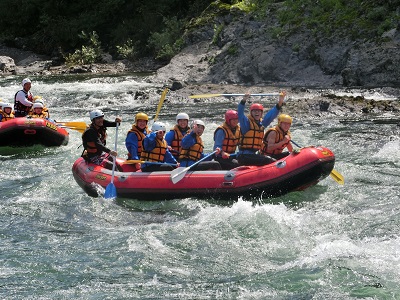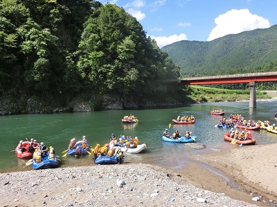 先日から雨が多く降り、長良川は、ラフティングにちょうど適した水量のようです。