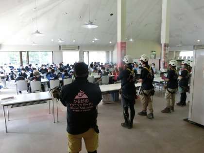 午後は、ひるがの高原スキー場での「ジップライン班」と、牧歌の里での「ものづくり班」に分かれて選択別体験です。