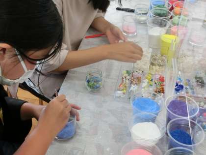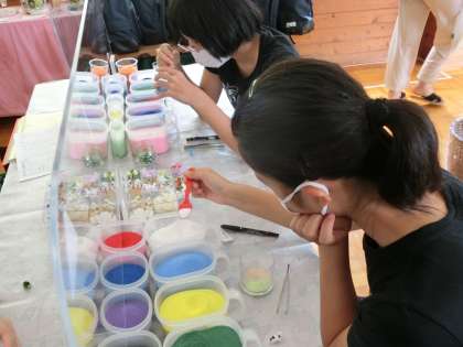 まずは、透明の器に、とてもキレイな砂を敷き詰めていきます。