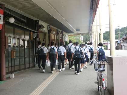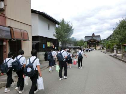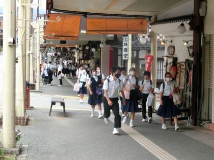 しっかり食べて、しっかり買って、生徒たちが別院に向かいます。