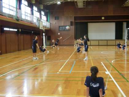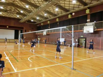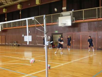 体育館でバレーボールの授業です。