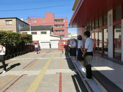 登校は中学生だけです。いつもと違って寂しいです。