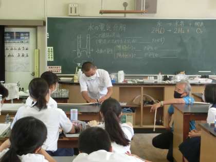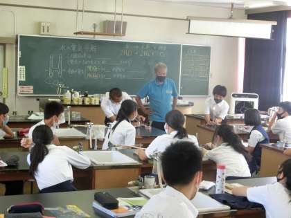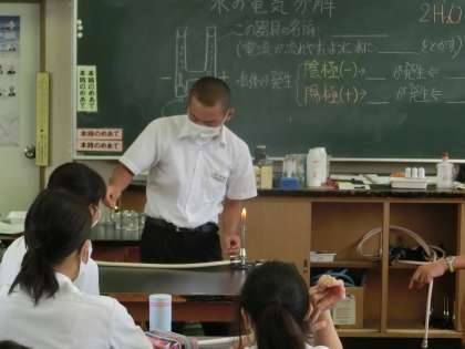 理科室では、ガスバーナーを上手につける練習を行っています。