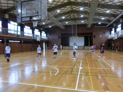 今朝は、男子バスケット部が汗を流しています。 次の総体予選、全力で勝ち抜いてください。