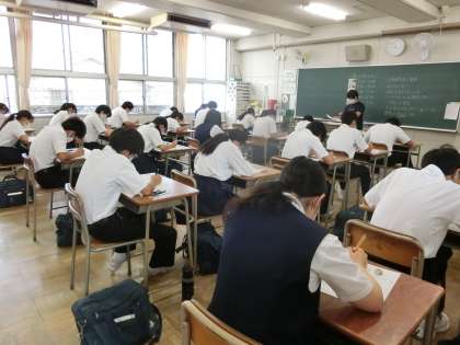 本日、3年は実力テストです。
