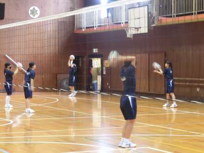 パスの導入で、ボールを強くフロアーに叩きつけています。