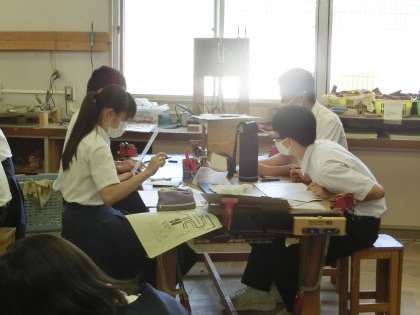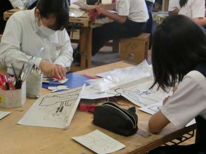 台紙をもとに、製図や色付け、細かな部品を取り付ける作業です。