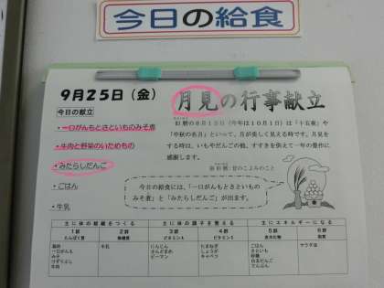 デザートは、「みたらし団子」です。お月見献立です。