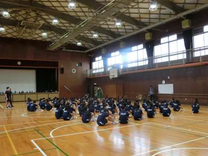 5限目、1年生は体育館でスポーツ大会。
