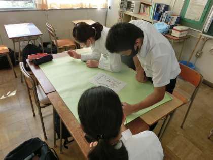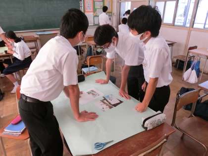 3年生は、文化祭展示の「修学旅行壁新聞」を作成しています。