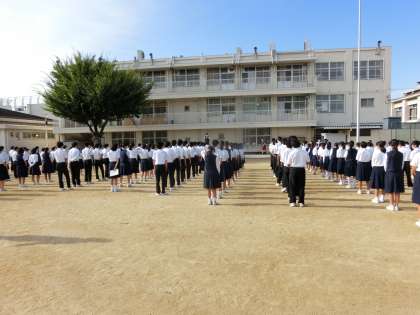 皆さん、おはようございます。久しぶりのグラウンドでの集会です。