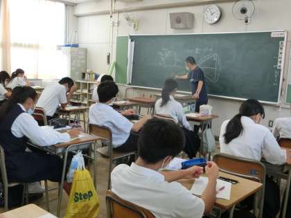 5時間目の授業。生徒たちは、眠気と闘いながら、頑張っています。