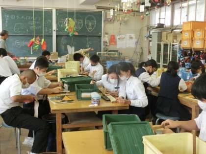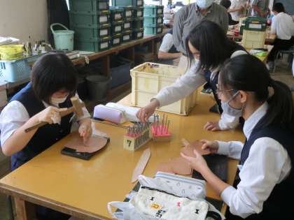 革工芸の実習を行っています。