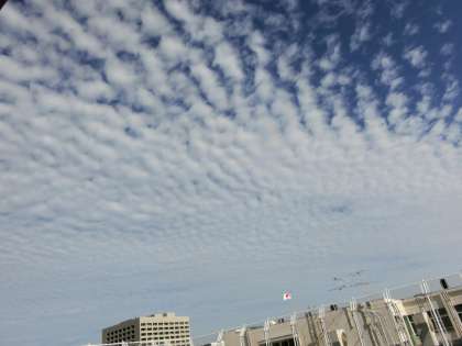 空を見上げると、秋のイワシ雲がキレイに広がっています。 やはり夕刻から、雨でしょうか。
