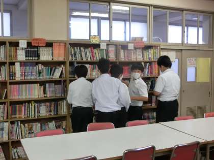 生徒たちが図書室に集まっています。