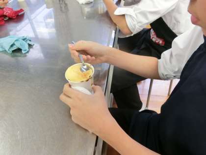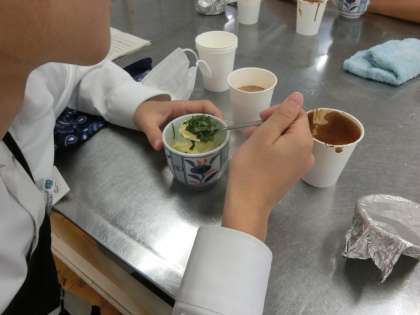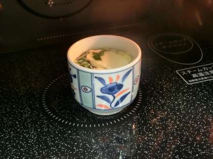 メニューは、茶碗蒸しと、カップのシホンケーキです。