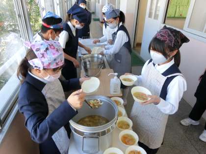 午前の授業が終了し、食欲の秋、給食時間がやって来ました。