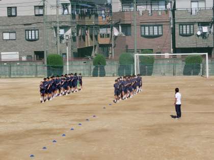 秋晴れのグラウンドでの授業。