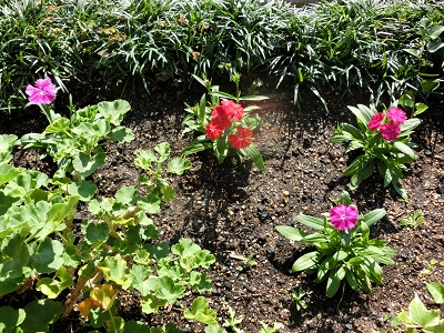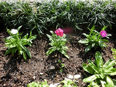 体育館前の花壇に、なでしこの花が植えられました。