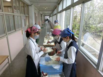 今日のメニューは、「お好み焼き」「豚汁」「きゅうりの梅風味」でした。