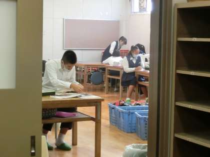 家庭科は、被服室で実習を行っています。