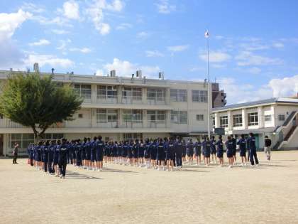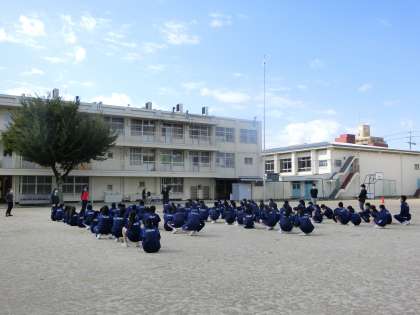 お天気の中、大領フェスティバルの体育大会の部で行われる3年の学年種目について、練習が行われました。