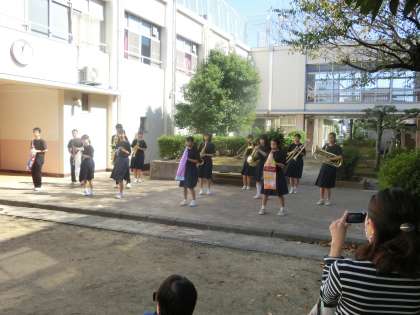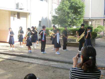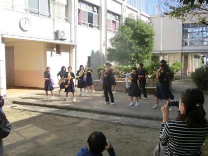 オープニングは、中庭で3年生が踊りながらの演奏です。