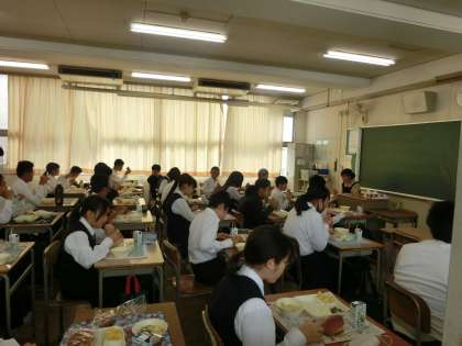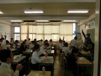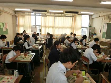 みんな美味しそうに、コーンクリームシチューを食べています。
