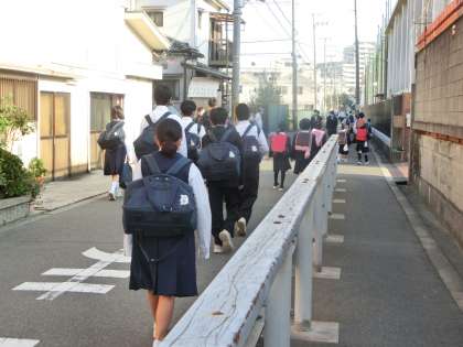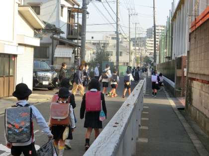 今朝も児童さん、生徒たちが元気よく登校してきました。