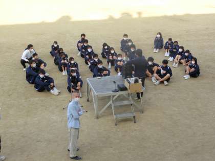 文化祭の展示部門と同時並行で、体育の部のグラウンド準備です。