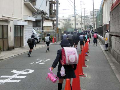 今朝も元気よく児童さん、生徒たちが登校してきました。
