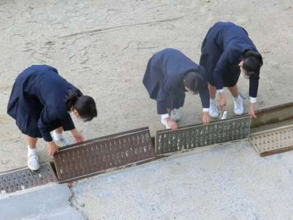 側溝には大雨のたびにグラウンドの土が流れ込みます。