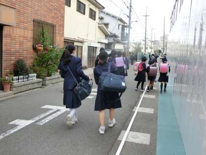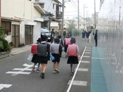 少し肌寒い中、児童さん・生徒たちが登校してきました。