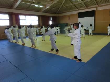 体育の時間。本日は男女合同で、柔道の授業です。