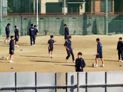 サッカーの授業が行われています。