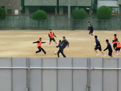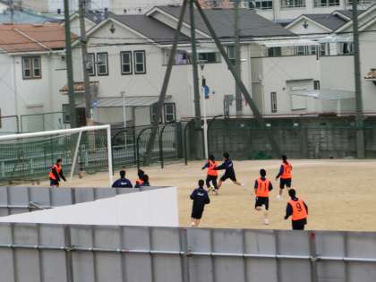 とても寒いグラウンドから、男子の歓声が聞こえてきます。