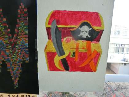 窓ガラスに掲示された作品。