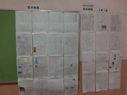 社会科の歴史新聞が掲示されました。