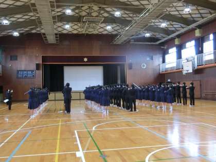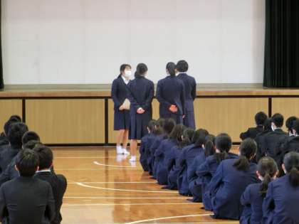今朝は、女子体育のバスケットボールの表彰がありました。