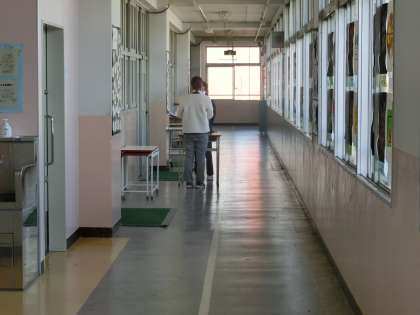 英語の時間です。 廊下で一人ひとり、英会話の確認のようです。 うまく英語で話せるでしょうか。