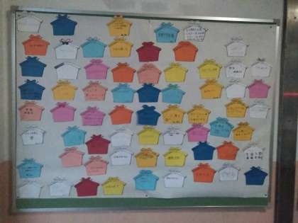 2年生の掲示板に、三学期の各自の目標が張り出されました。